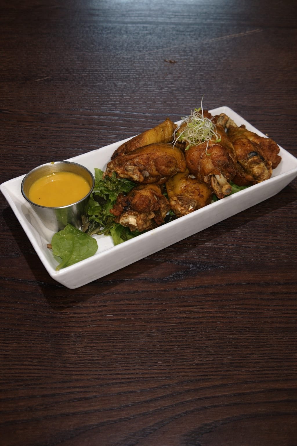 6 alitas de pollo con una rica salsa honey mustard de la casa